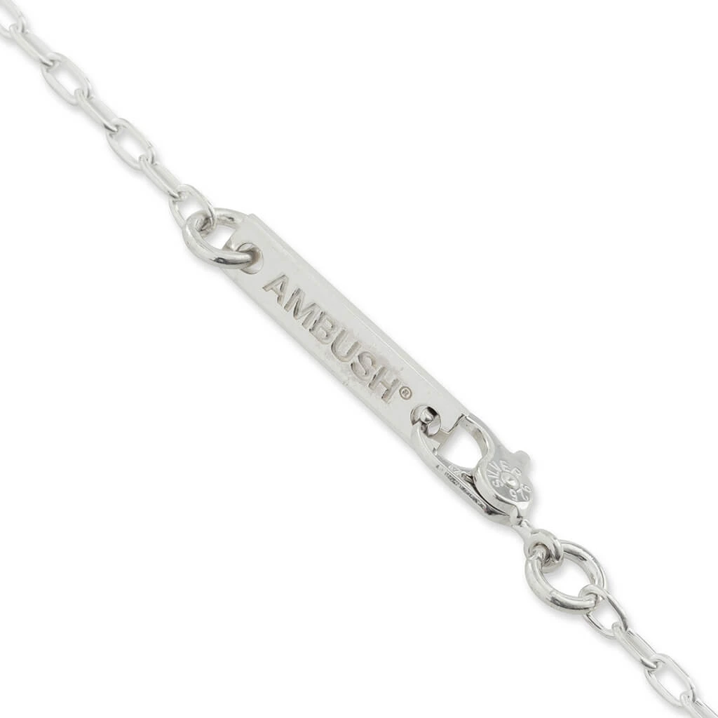 AMBUSH® began as an experimental line of jewelry – innovative pop art-inspired designs capturing a distinct Tokyo aesthetic. The iconic trademarked POW!® motif in particular received media coverage around the world. With apparel created as a canvas to complete the story, AMBUSH® evolved into designing unisex collections. Pictured is the Ambush Carved Stones Charm Necklace in Blue/Silver.