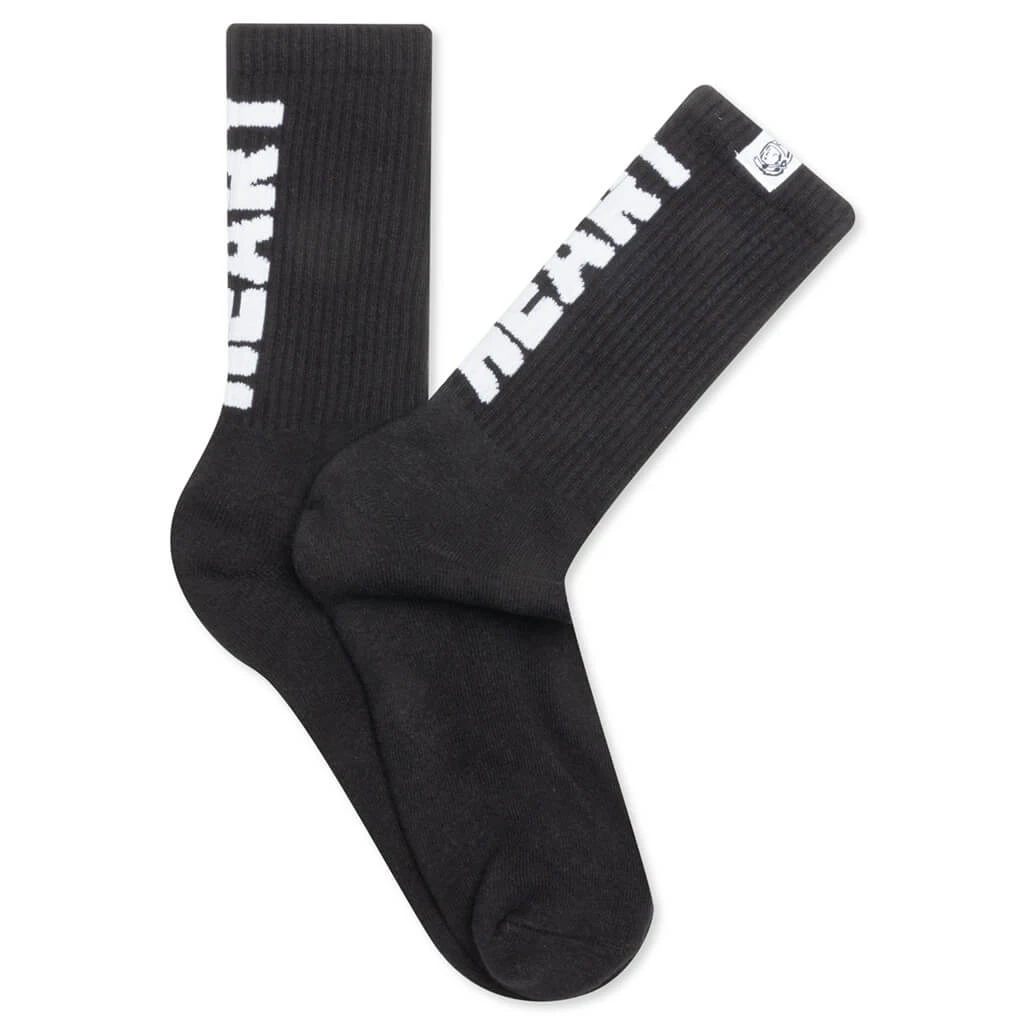 The Billionaire Boys Club Gravity Socks are the perfect addition to any sock collection. The pair are composed of cotton and spotlight jacquard-knitted phrasing at the ankles. The ribbed detailing wraps up the rest of the look.