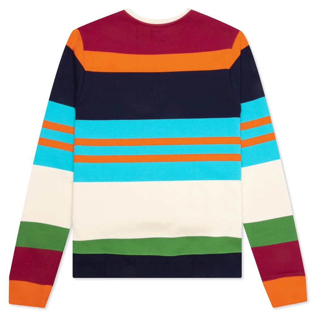The Billionaire Boys Club BB Bonzai Crew is fit for everyday wear due to its cotton construction and unique design. The iconic streetwear label’s crewneck sweater features a quality-cut construction along with an all-over jacquard striped knit design. The design is complete with a signature astronaut motif patched at the upper-left portion of the chest.