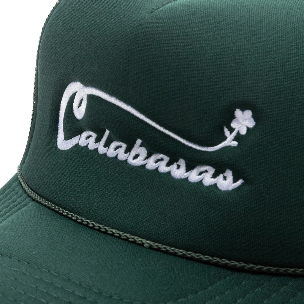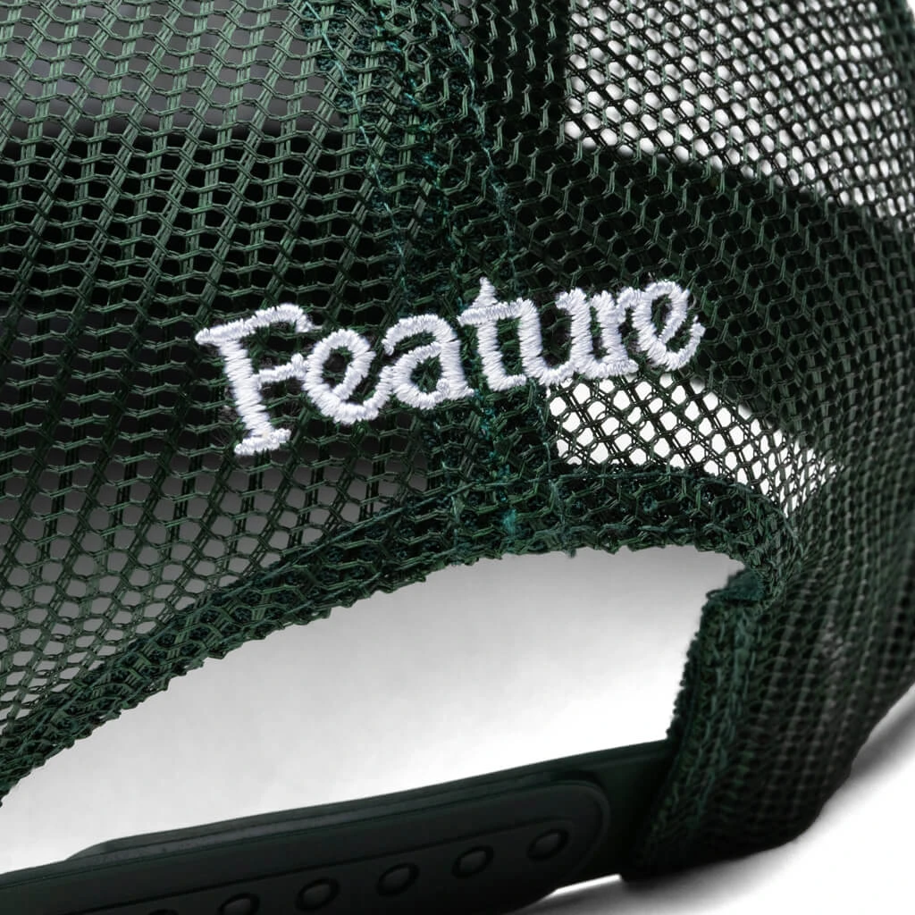 Paying homage to our California location, the Calabasas Trucker is designed with top-tier embroidery and classic branding. A structured foam panel is decorated with cursive text and a flower motif commonly seen within the Calabasas collection. Upon the mesh fabrication, our classic FEATURE branding is stitched while a snapback closure can be tailored to your desired fit. The hat comes complete with a slightly curved bill and a knitted rope detail.Â