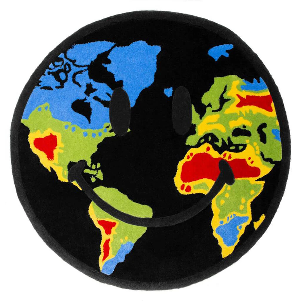 Chinatown Market shines a light on new imagery and signature branding within their Smiley Rug Western Hemisphere. Its heavyweight and plush design feature knitted graphics for a distinct look. The rug is a statement piece that can elevate any room.Â