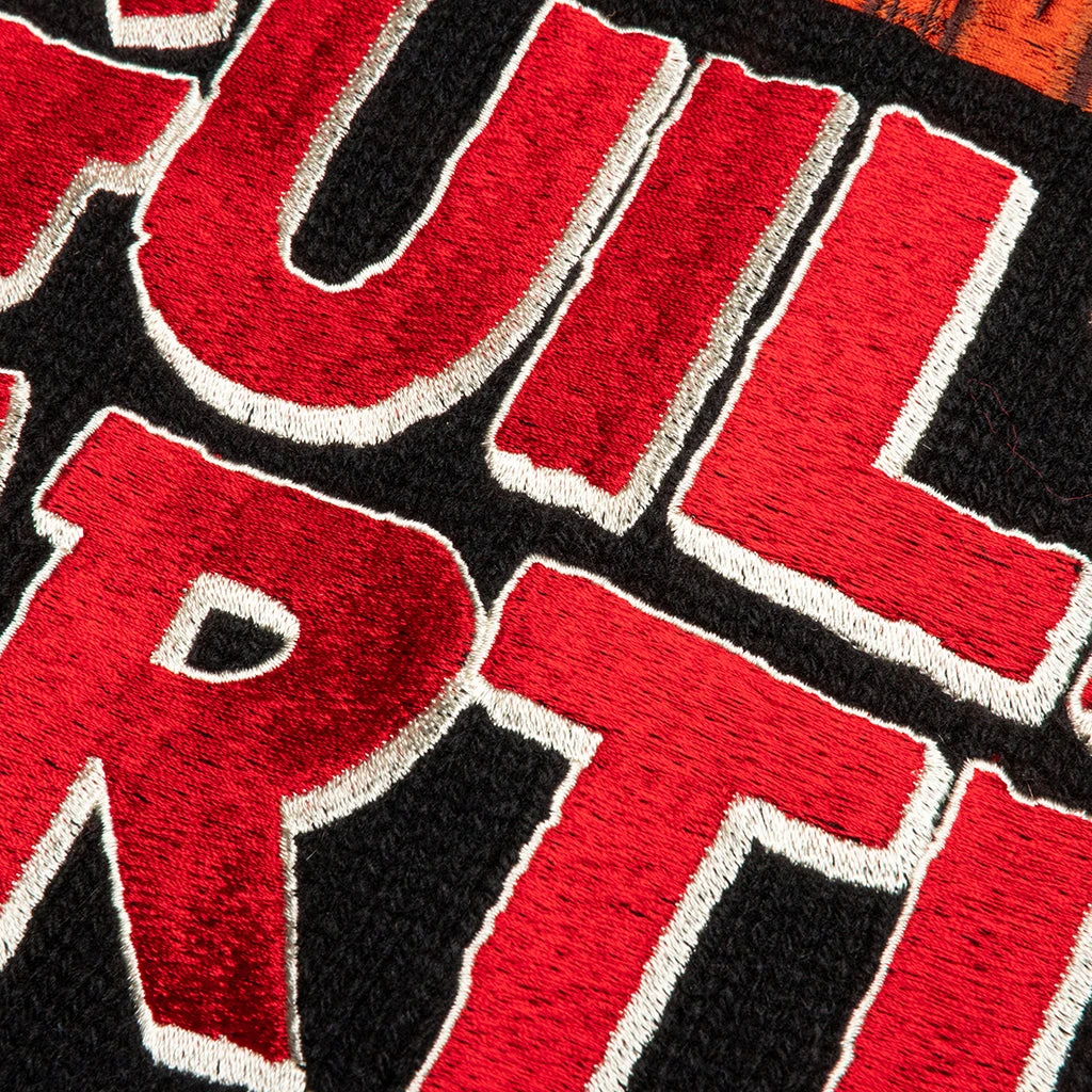 Adapting religious icons and punk graphics falls along Wacko Maria’s aesthetic. The Type-4 Classic Cardigan is a casual piece with button closures. The back is an embroidered image of the signature Virgin Mary motif along with their popular saying, “Guilty Parties.”