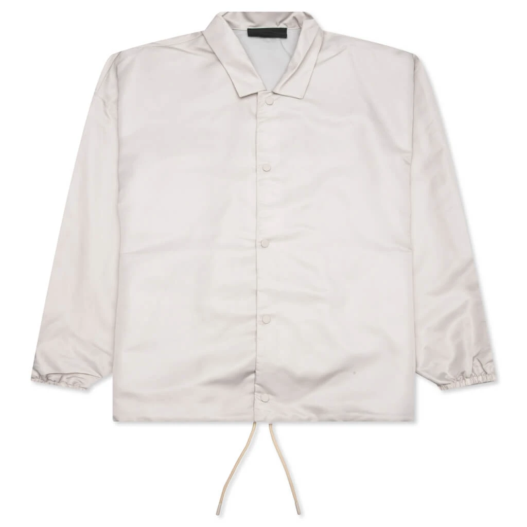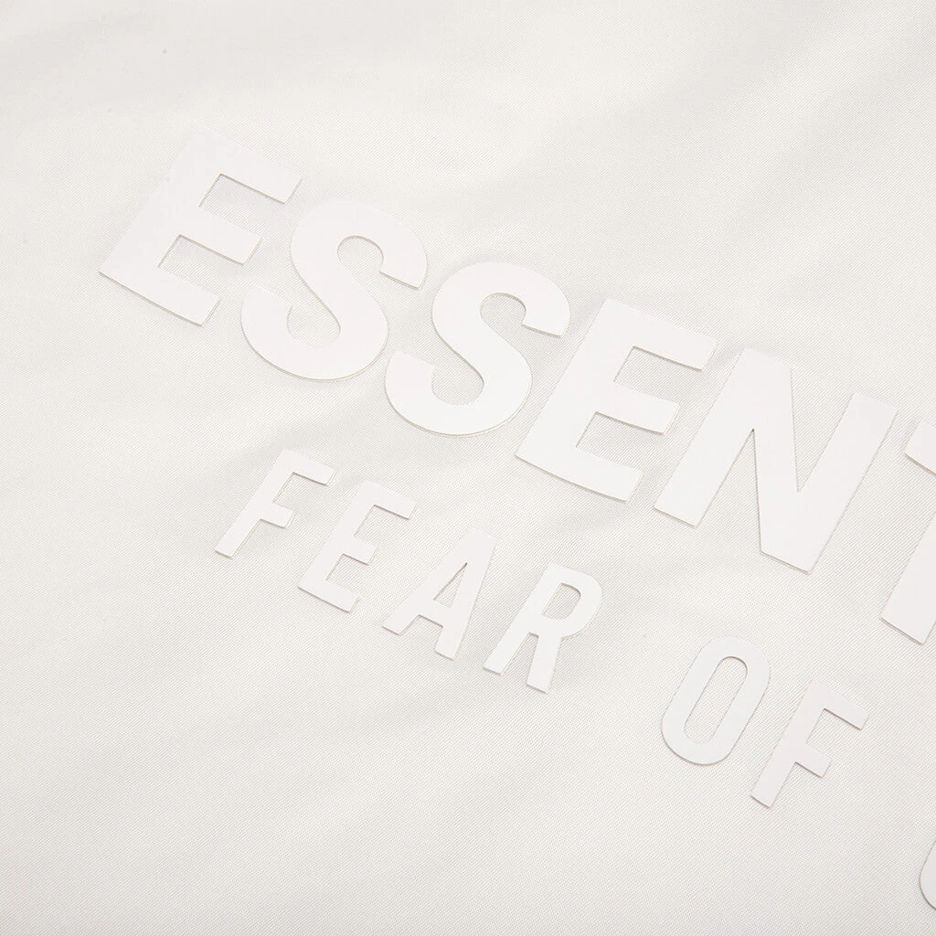 The Fear of God Essentials Coaches Jacket is cut from Taslan nylon and takes cues from the original sports style. The Essentials Fear of God logo on the back is vintage-inspired but updated in a rubberized soft-touch appliqué. Additional details include a snap button closure, side seam pockets, elasticated cuffs + a drawstring waist hem. A Fear of God rubberized label can be found at the back collar to complete the design.
