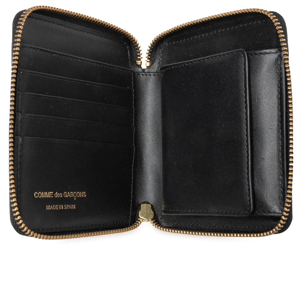 Customizing an everyday accessory and transforming it into Comme des Garçons’ aesthetic can be found within the Brick Line Wallet. The black brick pattern is found throughout the piece and is accented with gold hardware. Made out of 100% leather the inside consists of compartments and an embossed logo.Â