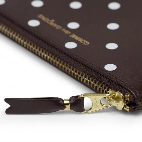 The avant-garde designs of Comme des Garçons have cast contemporary fashion in a new light. This SA8100 wallet is constructed from premium leather and features a main compartment with zip closure. Pictured is the Comme des Garcons SA8100 Polka Dot Wallet in Brown.