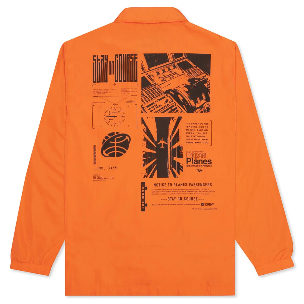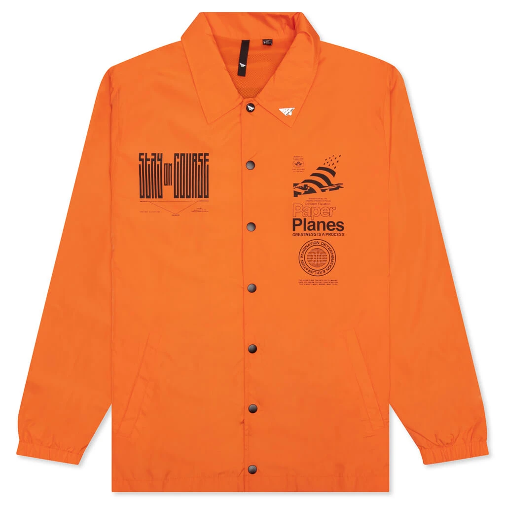 Perfect for the cooler months, the Paper Planes Destination Coach Jacket features a lightweight 3.6 oz polyester construction for optimal breathability and comfort. Screen-printed artwork is placed at the front and back of the design, while a snap-up closure offers security. The design is fully lined with mesh material, while a Paper Planes pin appears at the collar. The front welt pockets complete the design.