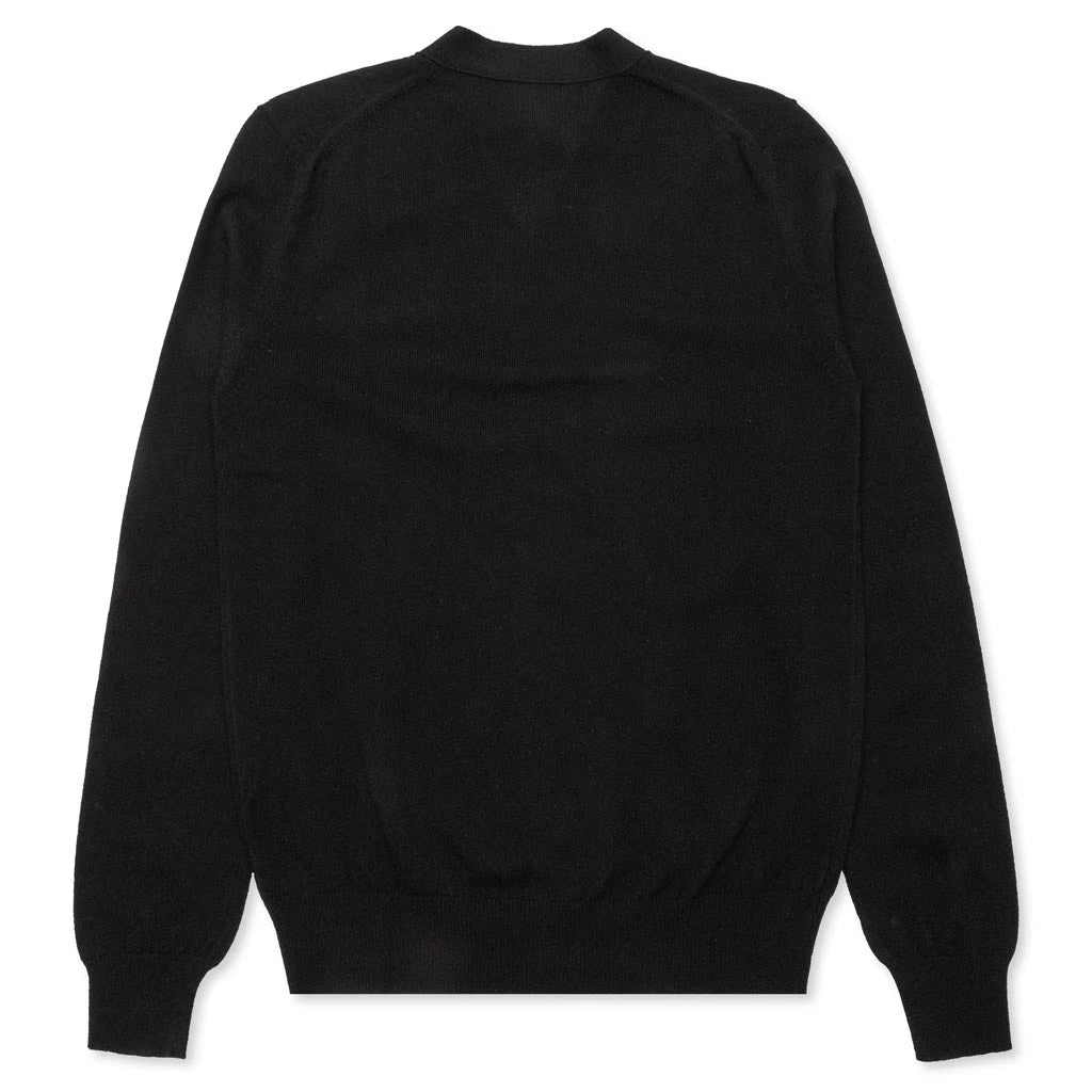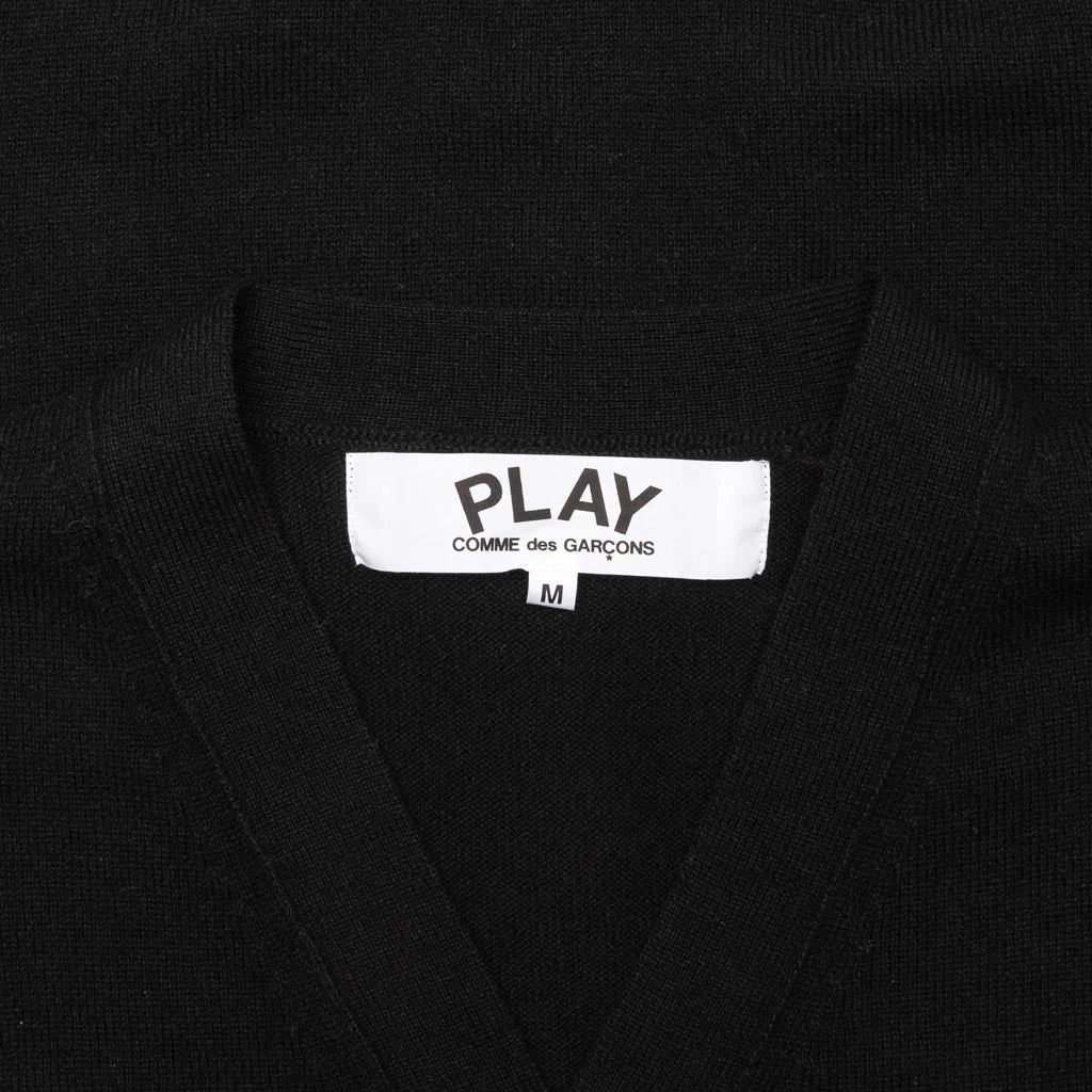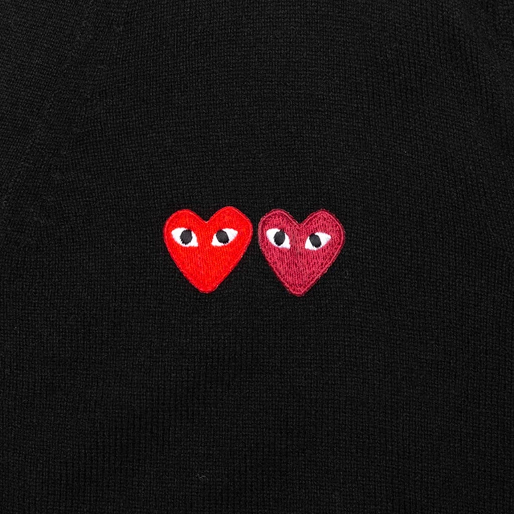 The concept of the Comme des Garcons PLAY line is design by not designing. Characterized by the iconic red heart logo designed by artist Filip Pagowski, the line is a collection of unisex basics, fragrances, and footwear. Pictured is the Comme Des Garcons PLAY Double Heart Cardigan in Black.
