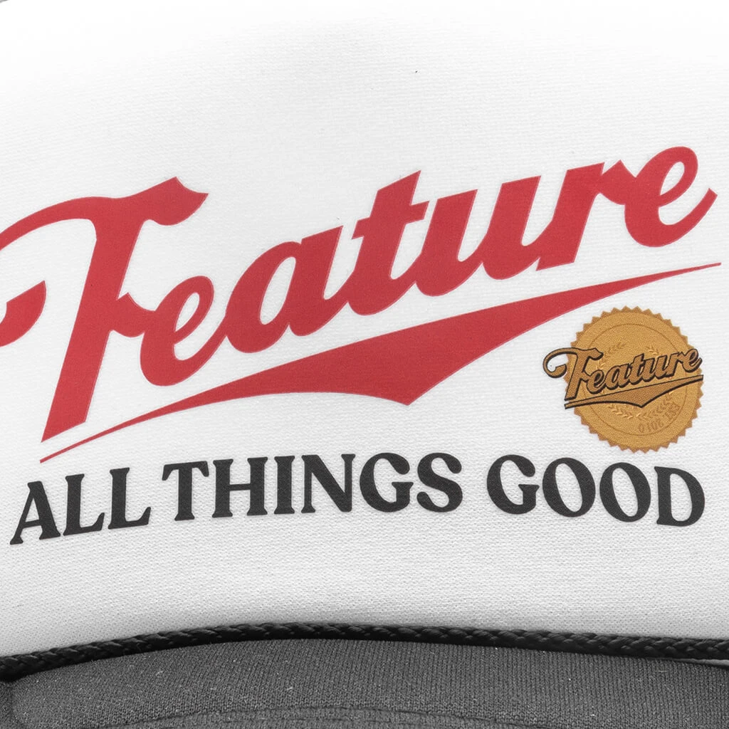Taking on a vintage aesthetic, our exclusive FEATURE Draft Trucker Hats make an impression on any headwear collection. The design features a polyester foam construction as well as a structured front. A curved brim is placed, while the mesh detailing can be found at the sides. An adjustable snapback closure is also placed at the rear. On the face of the trucker hat is a screen-printed ‘FEATURE’ logo hit as well as our ‘All Things Good’ mantra.