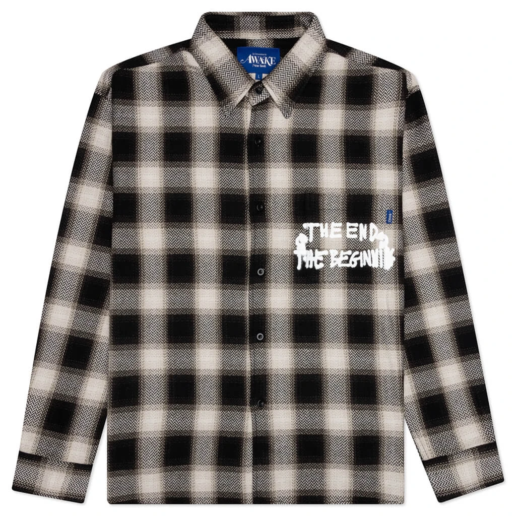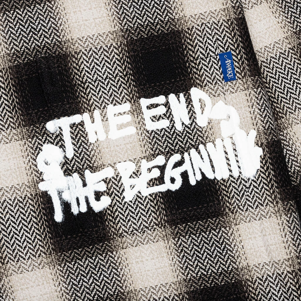 Awake NY introduces the End and Beginning Embroidered Flannel. Composed of cotton, the silhouette spotlights a button-down closure and a spread collar. Barrel cuffs are placed, while the all-over checkered print makes a statement. Embroidered branding and graphics at the front and rear wrap up the remainder of the look.