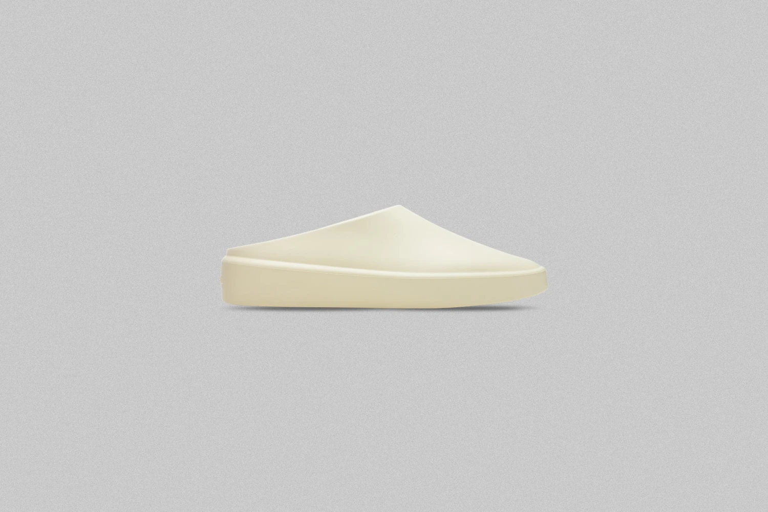 The Luxury Los Angeles-based label Fear of God introduces The California. Made entirely from innovative foam rubber produced in Italy from patented XL Extralight Technology. The Extrabounce compound is light and allows for greater flexibility, comfort, and durability. Backless and made for a slip-on design, the sculptural aesthetic emphasizes functionality by incorporating an inner vent to provide maximum airflow, while the raised tread provides optimal traction and durability. Fear of God branding at the heel ties together the sleek aesthetic.