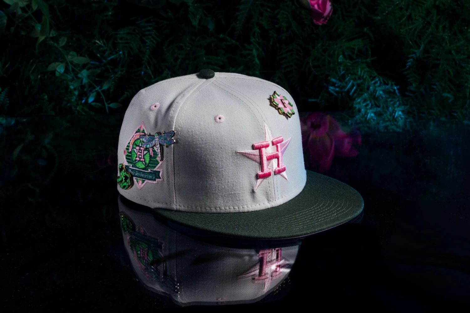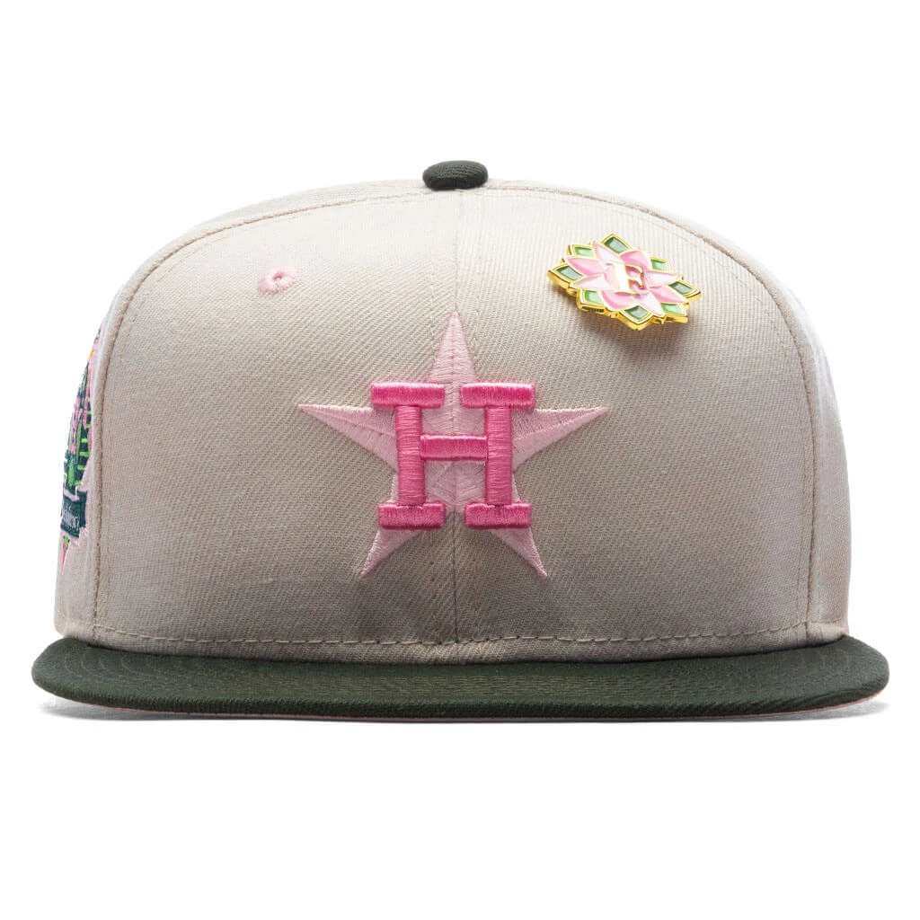 Representing purity, beauty, and prosperity, the FEATURE x New Era 59FIFTY Fitted ‘Lotus’ is inspired by the iconic lotus flower. The silhouette is cut entirely from polyester and incorporates woven eyelets on the crown for a breathable touch. A contrasting flat brim offers further dimension to the design. The silhouette features a raised and embroidered team logo at the face, along with a championship patch at the right side. An embroidered FEATURE script logo can be found at the rear. The hat is finished with three lotus-inspired pins for a finishing touch.
