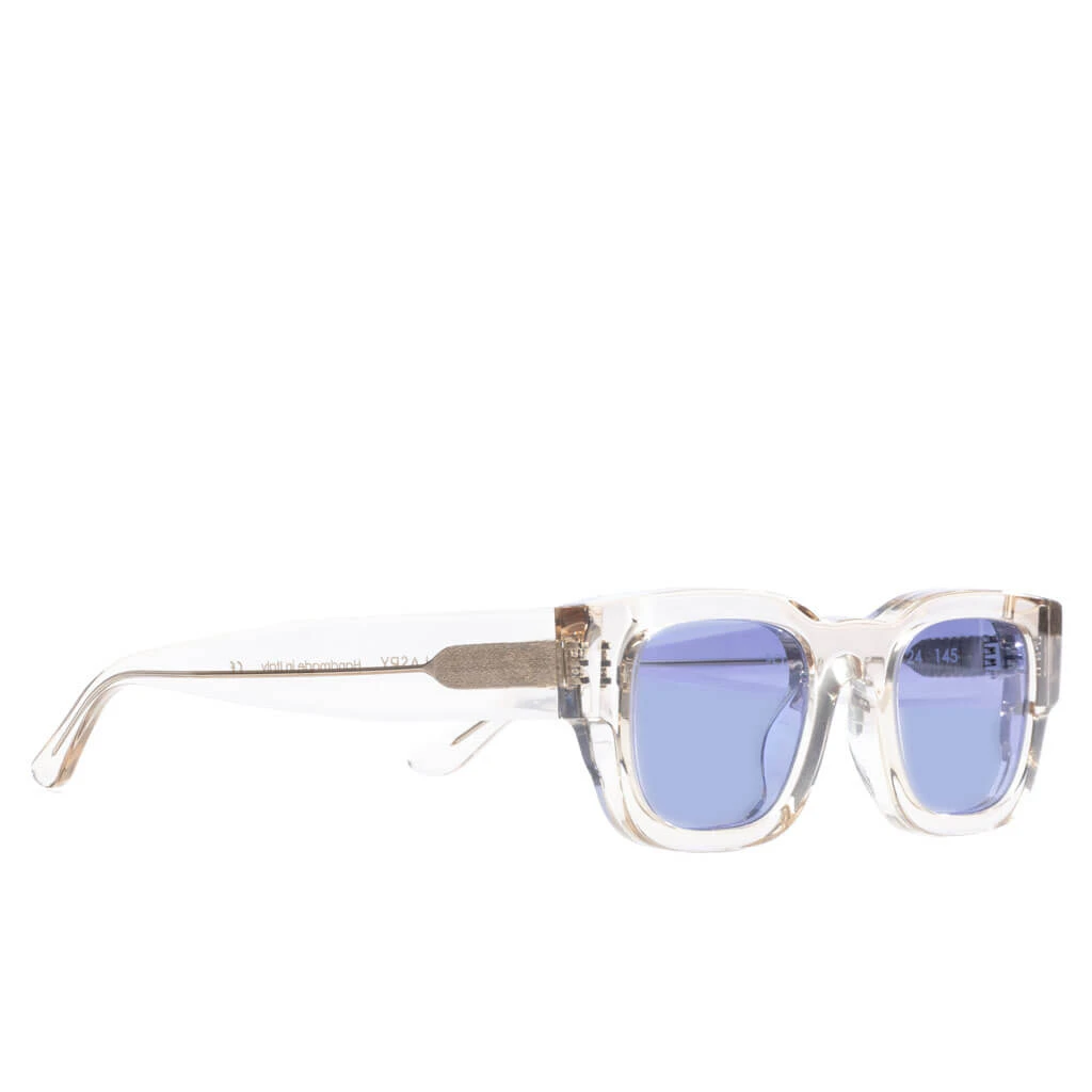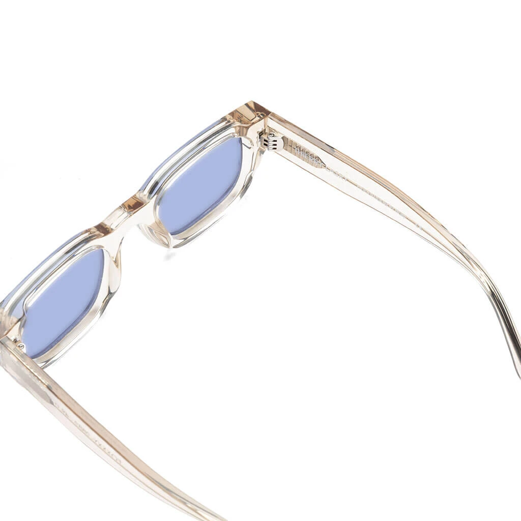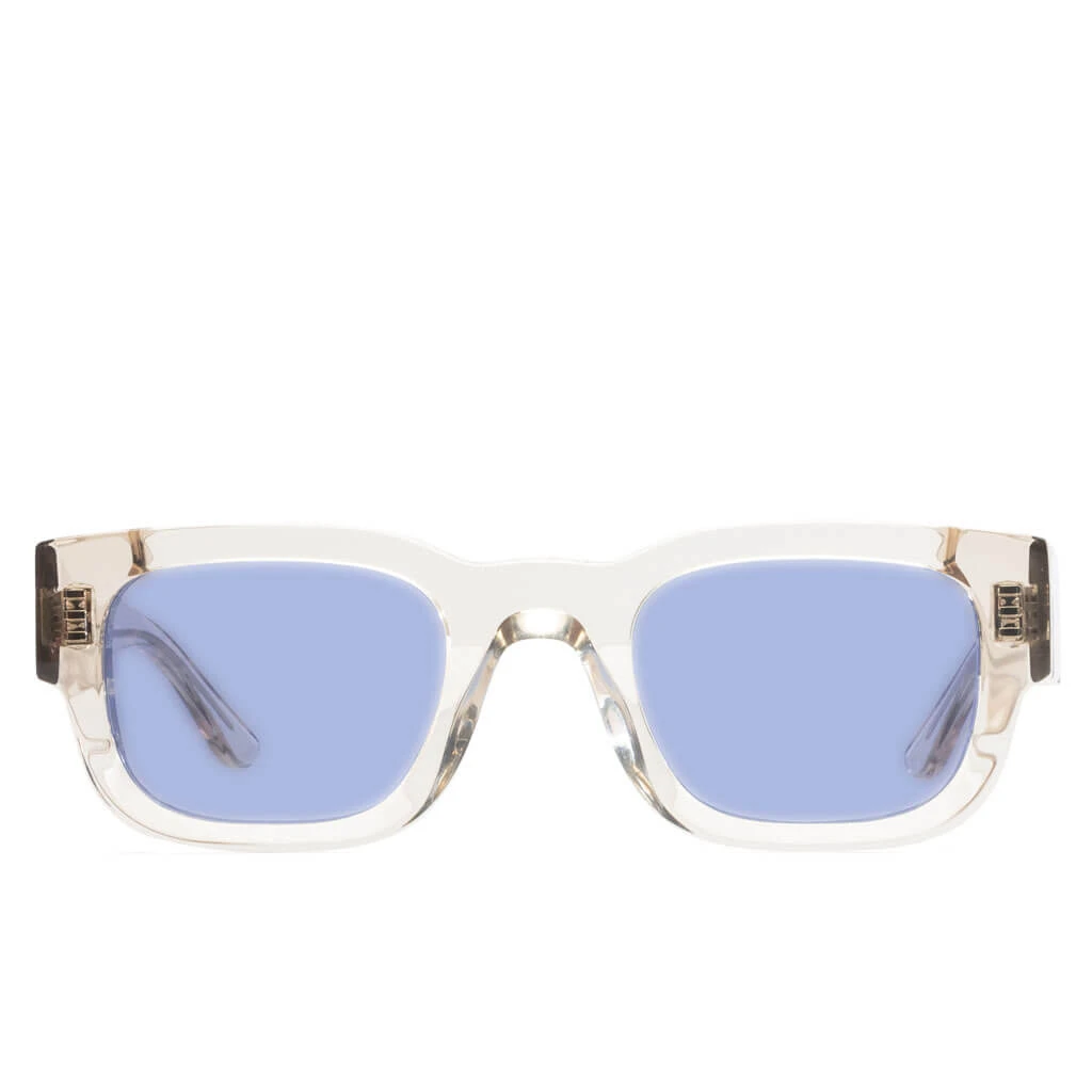 Foxxxy is a classic frame from Thierry Lasry with its rectangular frame and keyhole bridge. The Foxxxy 2882 silhouette introduces thick black frames and wide temples. Handcrafted in France from authentic Italian acetate, the everyday essential shape is elevated further with its translucent champagne frame and purple tinted lenses.Â