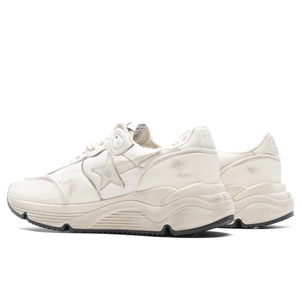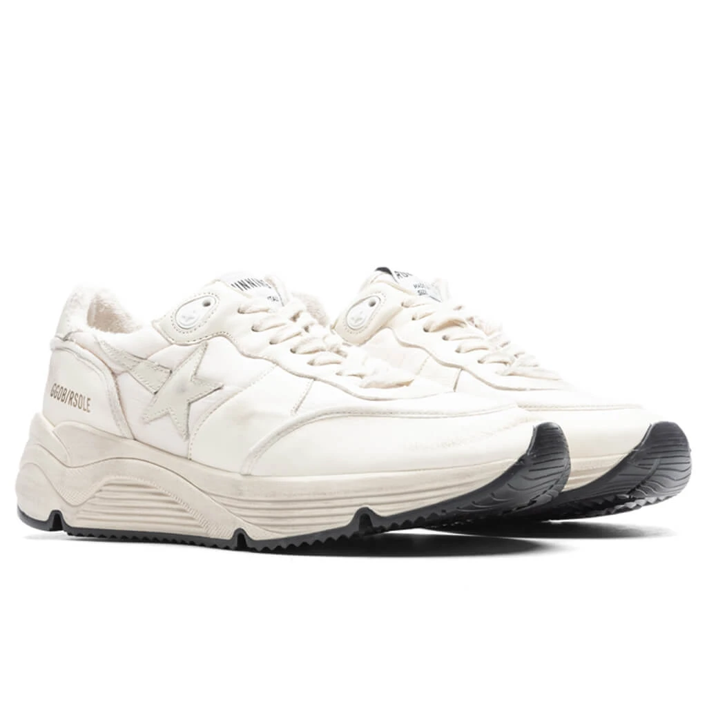 The Golden Goose Women’s Running Sole makes an impression on any footwear collection. Composed of leather at the upper, the sneaker utilizes distressed detailing along with a lace-up front and padded collar. The tongue label paired with the chunky midsole makes a statement. Another rubber outsole wraps up the remainder of the silhouette.