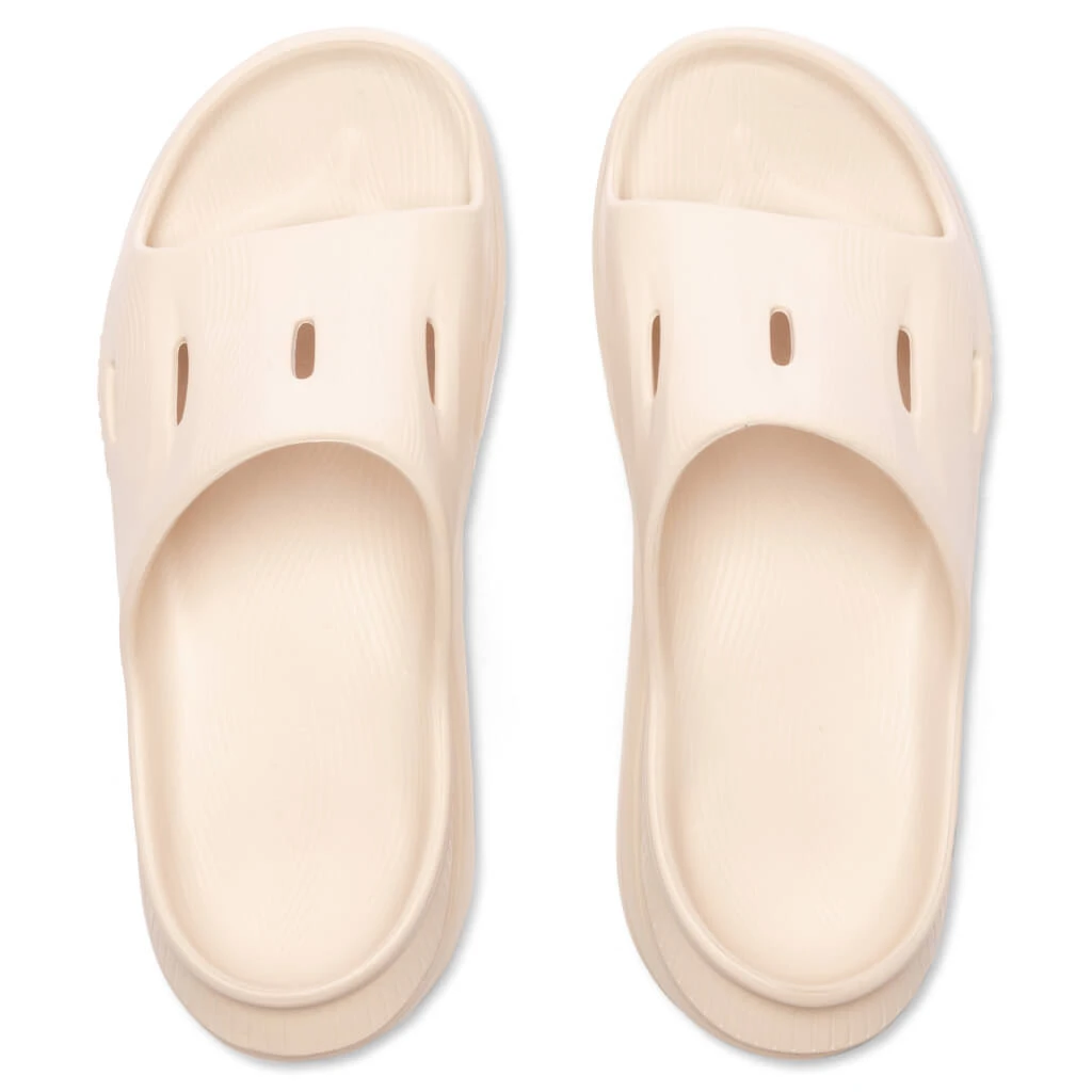 Hoka’s Ora Recovery Slide receives an updated iteration. Taking on ventilated airflow channels, the slip-on silhouette takes on dual-density geometry along with an injection-molded sugarcane EVA midsole for added comfort with each step. An early-stage Meta-Rocker is placed for added functionality. A sugarcane footbed is placed for additional comfort.