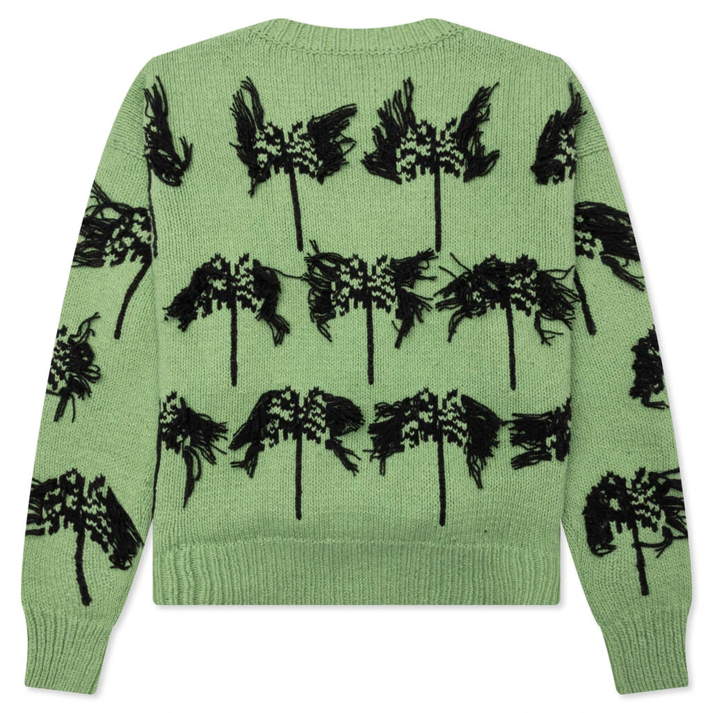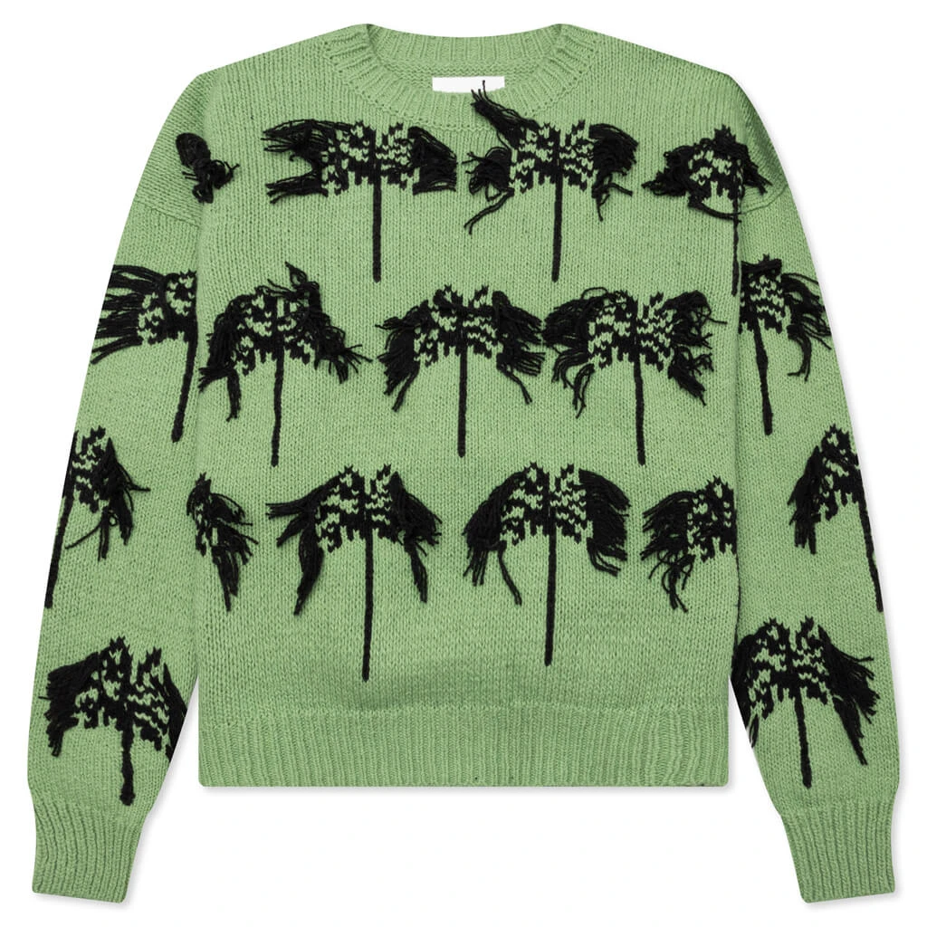 The Jil Sander Polo Sweater is a must-have design with its cotton construction and quarter button closure. A pointed collar is placed, while the rib-knit trims offer further dimension. The attached palm tree insignia wraps up the rest of the design.
