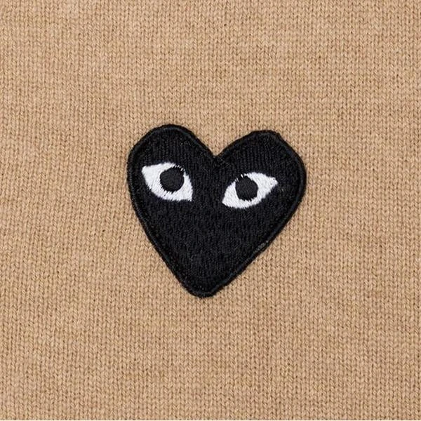 The concept of the Comme des Garcons PLAY line is design by not designing. Characterized by the iconic red heart logo designed by artist Filip Pagowski, the line is a collection of unisex basics, fragrances, and footwear for those who enjoy simplicity. Pictured is the Comme des Garcons PLAY Knit Cardigan in Tan.