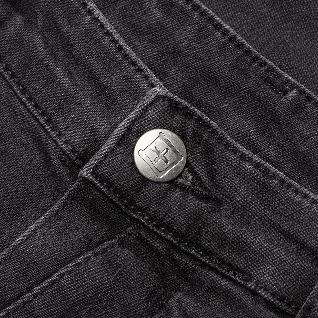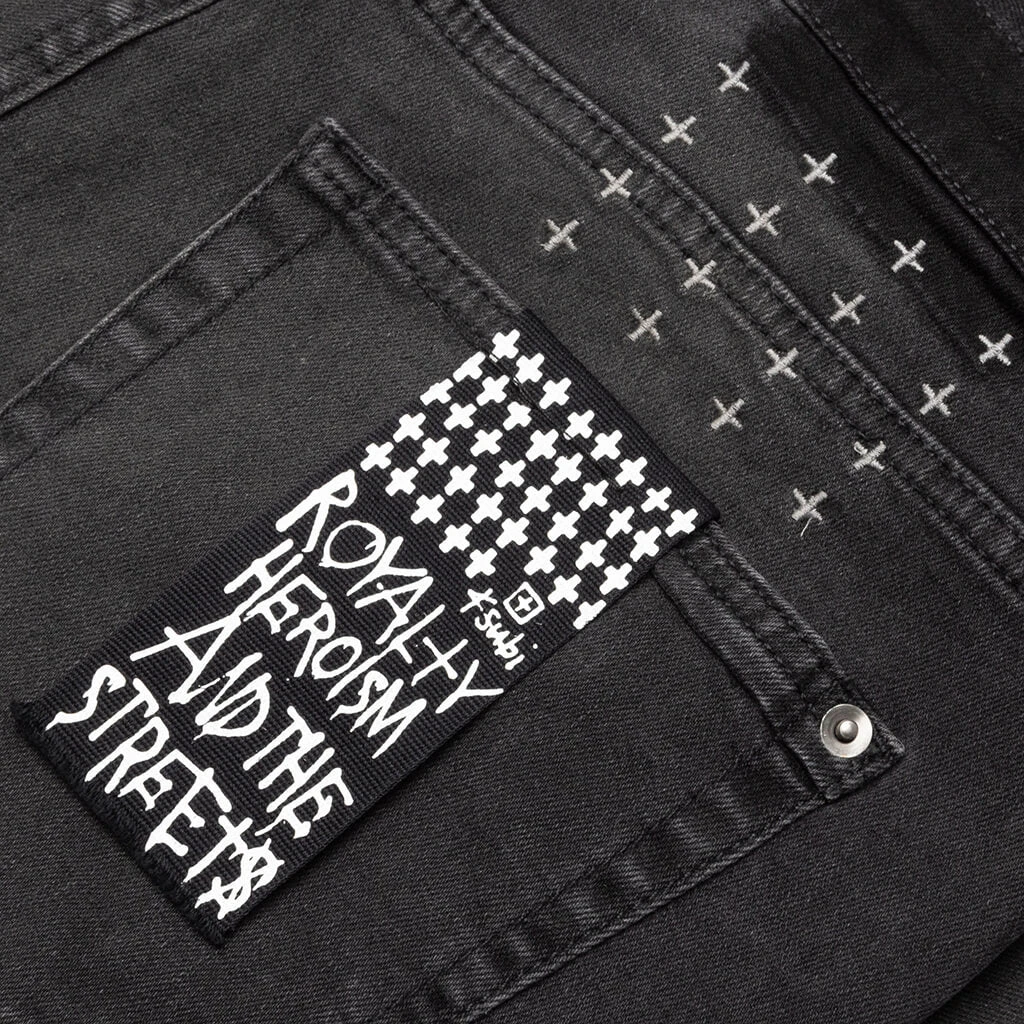 The Van Winkle jean features a shorter rise, and fits skinny from thigh to ankle. These denims are in premium comfort stretch denim, and feature five pockets and Ksubi cross embroidery at the reverse. Pictured is the Ksubi Van Winkle in Rookie.