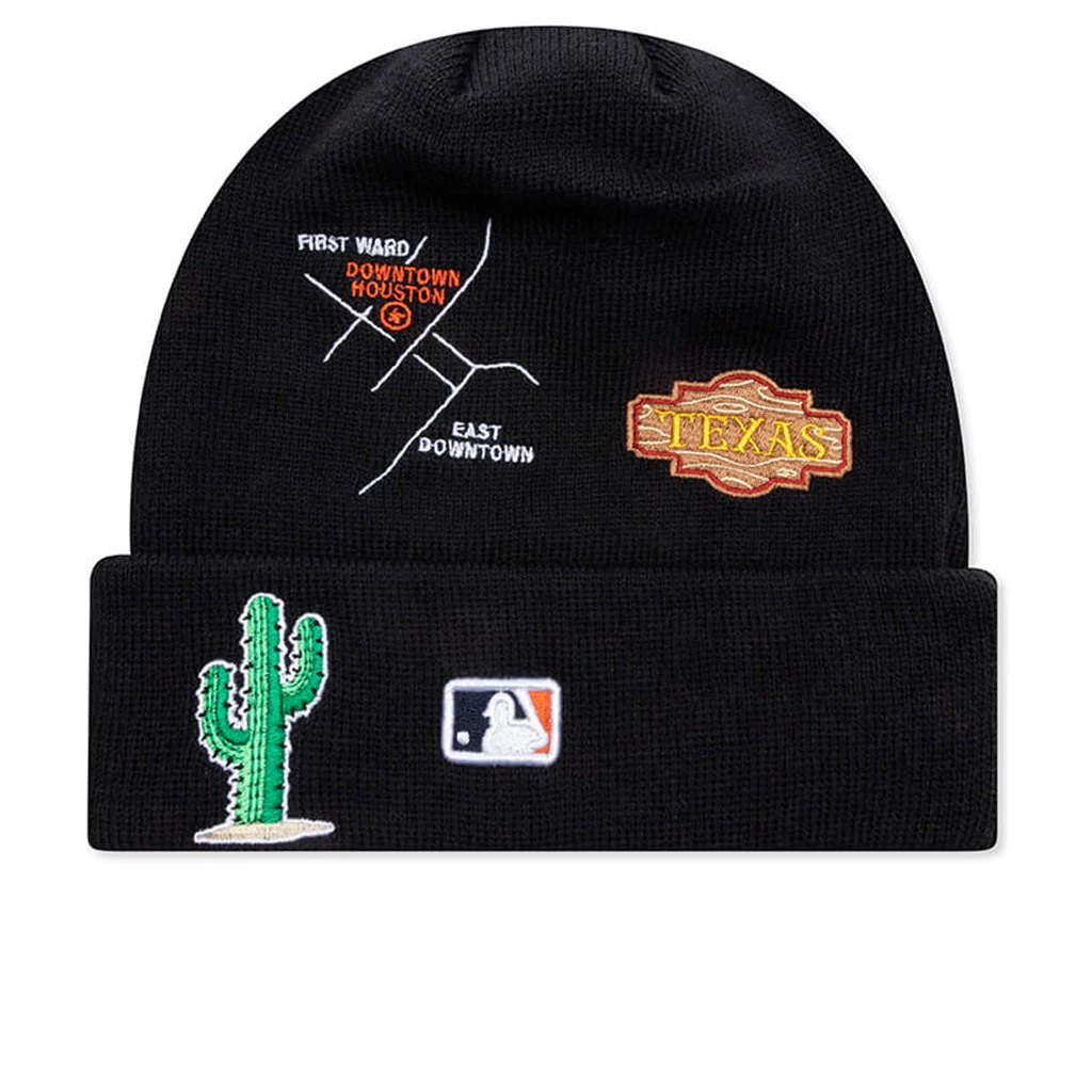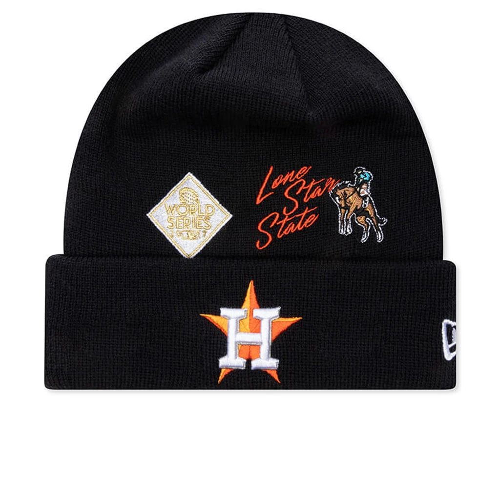 Represent the Houston Astros with pride with the New Era City Transit Knit Beanie. Crafted from acrylic, the beanie features a stretch fit that includes a single-fold design. Embroidered graphics with raised details are placed at the front and back of the design, including Astros branding as well as signature Houston motifs.
