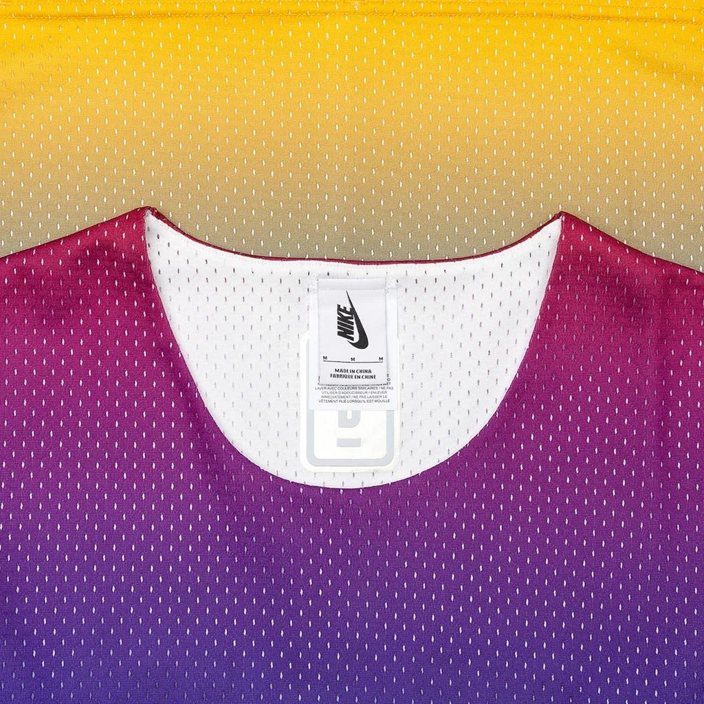 Pigalle and Nike join forces for a collection that blends art and sports. Inspired by the bold attitude and natural style of enthusiastic basketball players around the world. Combining Nikes modern functional materials and a unique Parisian style this collaboration firmly supports the message that the power of sports changes the world and conveys the worlds fascination with basketball. Pictured is the Nike x Pigalle NRG Tank Jersey in Court Purple.