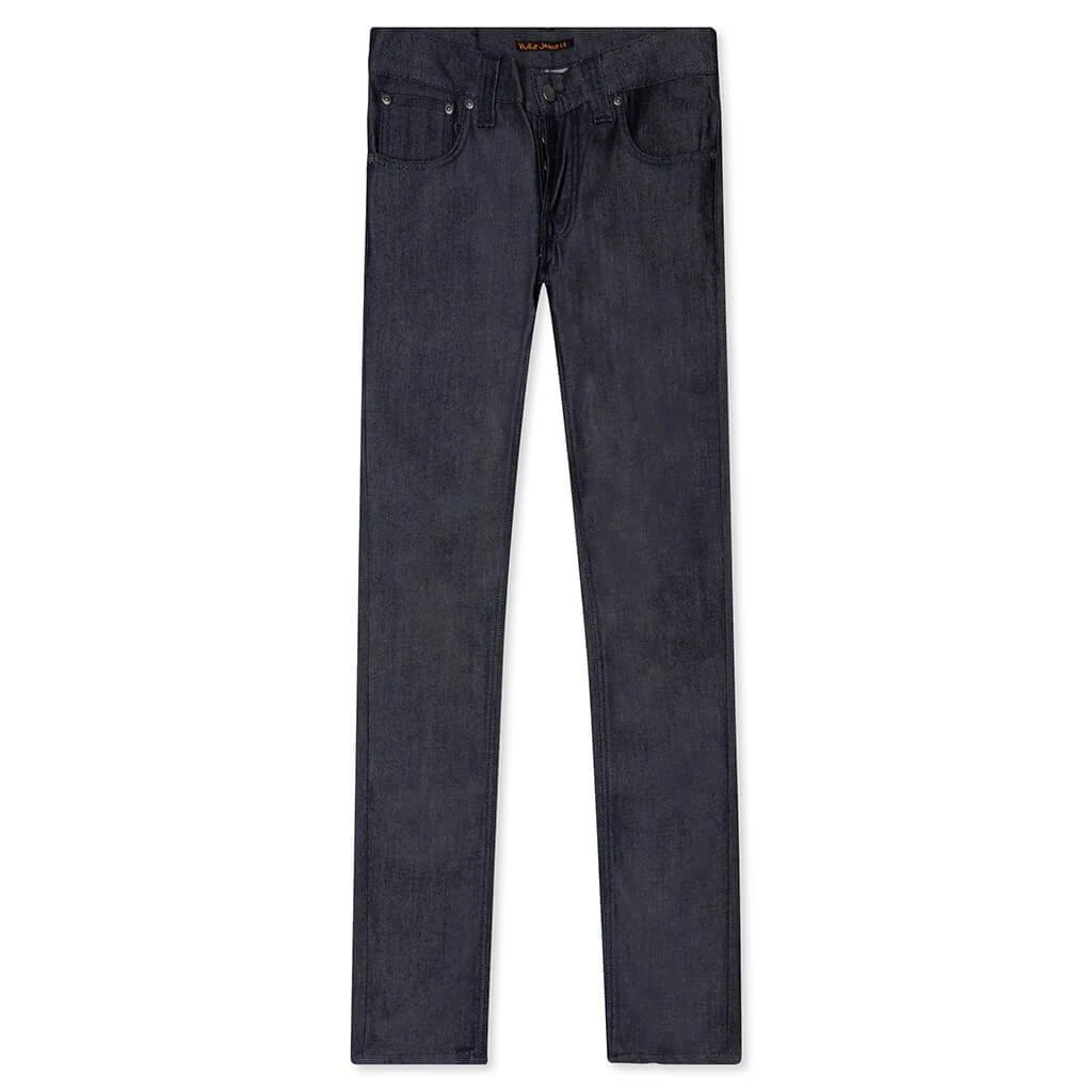 Nudie Jeans is a Swedish brand founded in 2001 by Maria Erixon and her then husband Joakim Levin. Nudie Jeans is the “naked truth about denim.” The belief that denim has the ability to age beautifully and can essentially form into the user’s second skin is what drives Nudie Jeans Co to create a jean that is both naked and personal. Pictured is the Nudie Jeans Grim Tim in Dry Navy Dips.