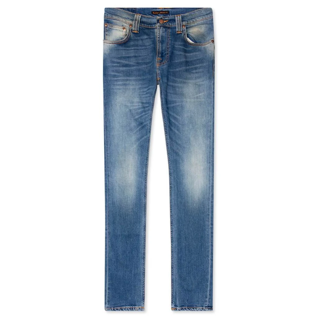 Nudie Jeans is a Swedish brand founded in 2001 by Maria Erixon and her then husband Joakim Levin. Nudie Jeans is the “naked truth about denim.” The belief that denim has the ability to age beautifully and can essentially form into the user’s second skin is what drives Nudie Jeans Co to create a jean that is both naked and personal. Pictured is the Nudie Jeans Thin Finn in Flood Used.