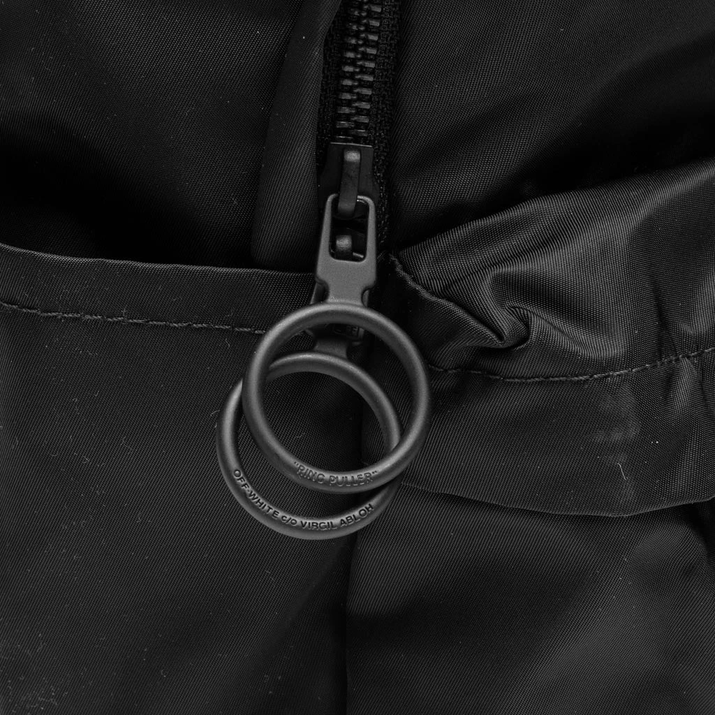 Off-White c/o Virgil Abloh is a fashion label rooted in current culture at a taste-level particular to now. Manufacturing is based in Milan with a core value of the brand to be made from the best available and particular opinion regarding fabric, fit and fabrication. Pictured is the Off-White c/o Virgil Abloh Off Wavy Logo Backpack in Black/White.