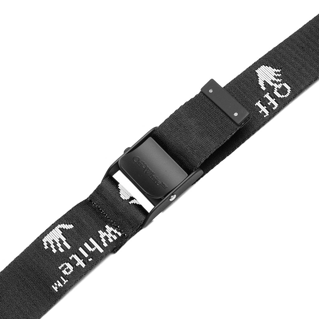 The well-known brand, Off White ℅ Virgil Abloh, continues to rise in popularity from season to season and continues to “define the grey area between black and white.” Off White ℅ Virgil Abloh has surpassed expectations and created a high-end fashion label that appeals to both streetwear consumers and those looking for progressive design. The brand focuses on high-end fabrics but in familiar streetwear shapes while using plain labels and industrial packaging. Pictured is the Off-White c/o Virgil Abloh OW Logo Belt in Black.