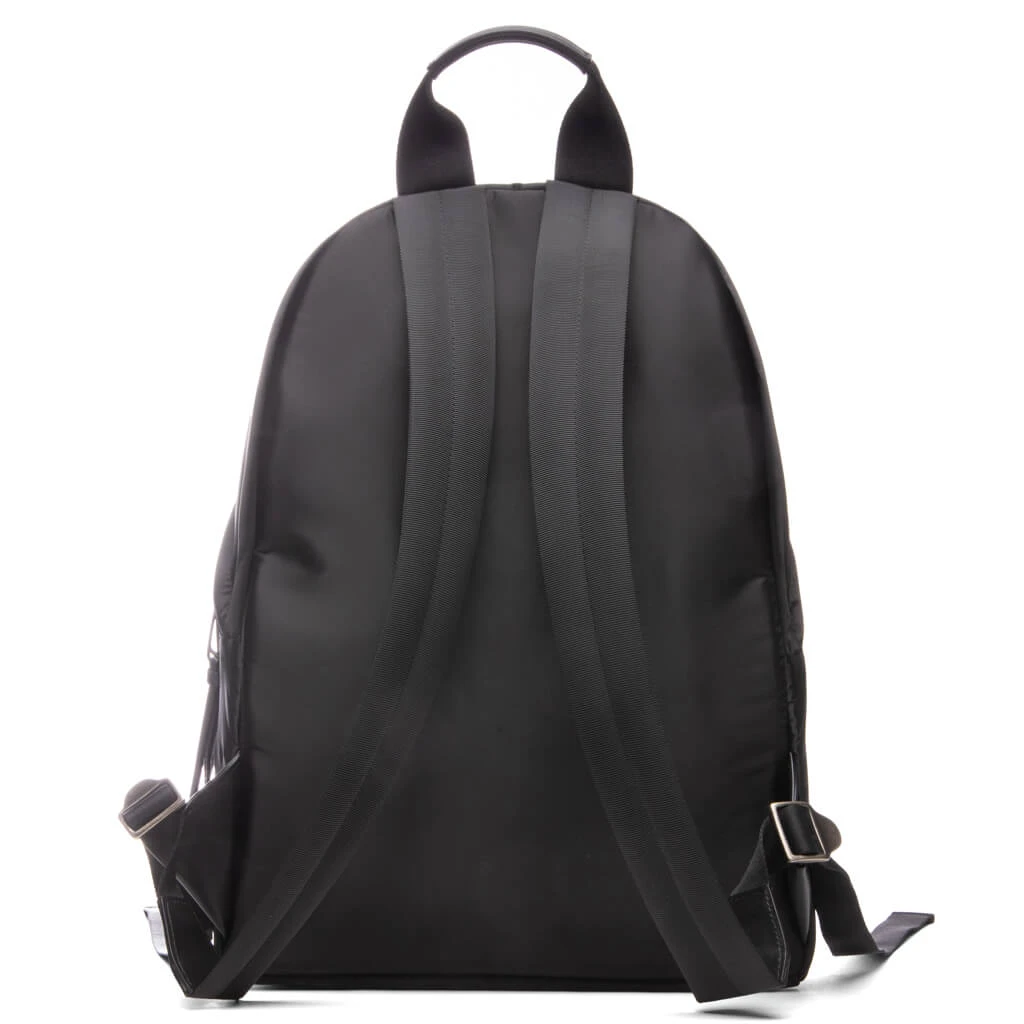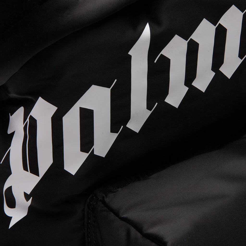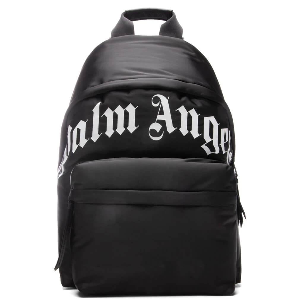 Embrace the aesthetics of Palm Angels with the Curved Logo Backpack. Featuring a blend of polyamide, polyurethane, cotton, and leather, the silhouette spotlights both elevated and functional aesthetics. Screen-printed Palm Angels branding is curved at the face, while a top handle and a zip closure at the front are placed. The zipped pocket at the front completes the rest of the design.