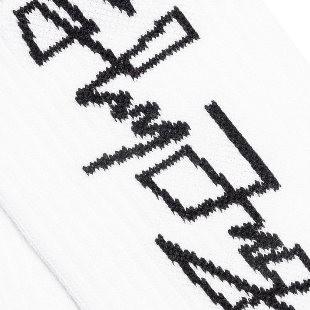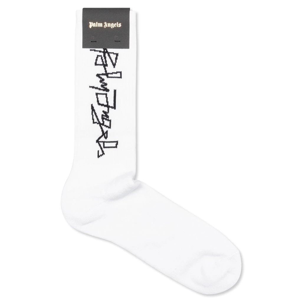 Stemming from a trip to Venice Beach, Francesco Ragazzi began Palm Angels with a coffee table book exploring the Los Angeles skateboarding scene. It was one picture he took that made him vision an image evoking the traditional representation of an angel, which would lead to the concept of Palm Angels. This Milan based label has perfectly blended high fashion with skateboarding inspired designs and 1970s slant. Pictured is the Palm Angels Side Desert Logo Socks – White/Black