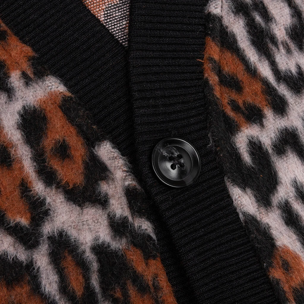 Elevating any aesthetic, the PLEASURES Boozy Cardigan is a must-have apparel item from PLEASURES. The silhouette is cut from mohair and includes a relaxed fit. A button-down closure is seen, while the rib-knit trims add further detailing. Embroidered branding at the chest paired with the all-over leopard print finishes the design.