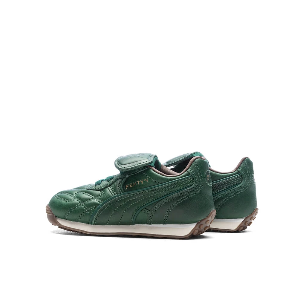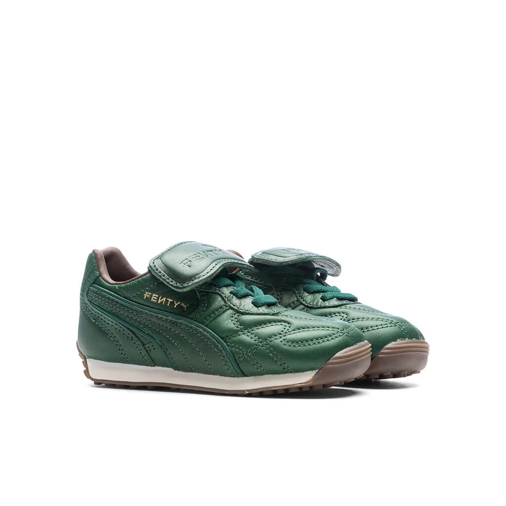 The FENTY x PUMA Avanti is a sport-fashion style inspired by the icon from PUMA’s archives. The Avanti’s football-inspired elements – like a stitched leather upper and gum sole – are given a fashionable twist with a monochromatic finish and debossed FENTY x PUMA branding.