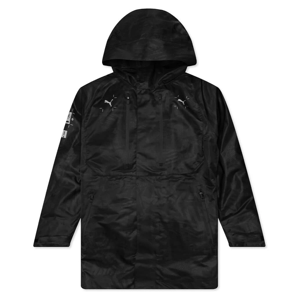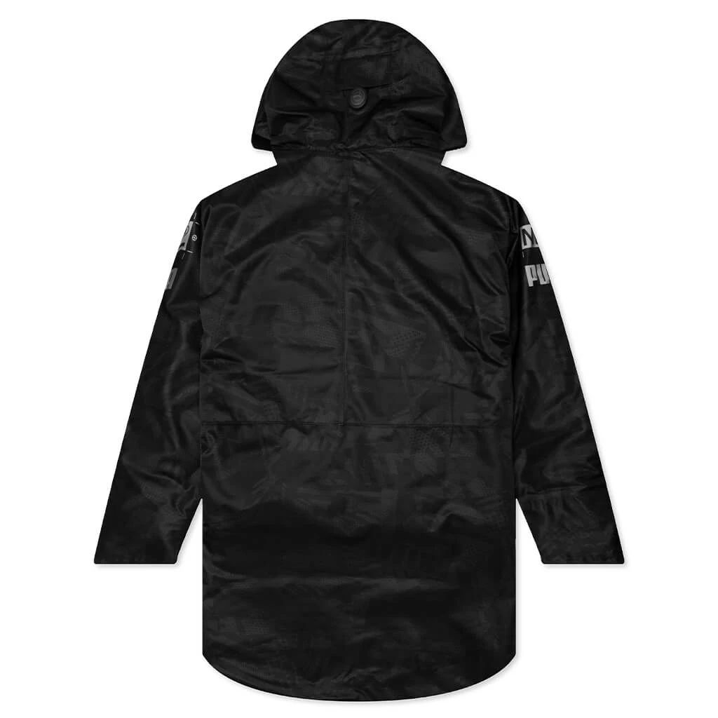 The Puma x Nemen 2 In1 3 L Jacket is a must-have outerwear apparel item. This collaborative silhouette takes on a polyester blend in addition to four zippered front pockets and a full-zip closure connecting to a hood. Collaborative branding is screen printed at the sleeves for added dimension.