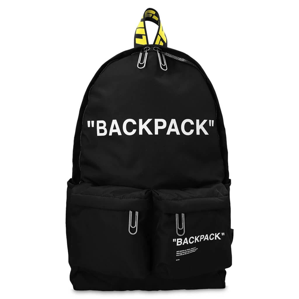 The Off-White Quote Nylon Backpack makes an impression with its blend of leather, polyester, polyamide, and acrylic. The item takes on a printed slogan at the front, while the front zip-fastening compartment and top zip-fastening add a functional touch. The main compartment and single-rounded top handle add additional functionality. The adjustable branded shoulder straps wrap up the remainder of the design.