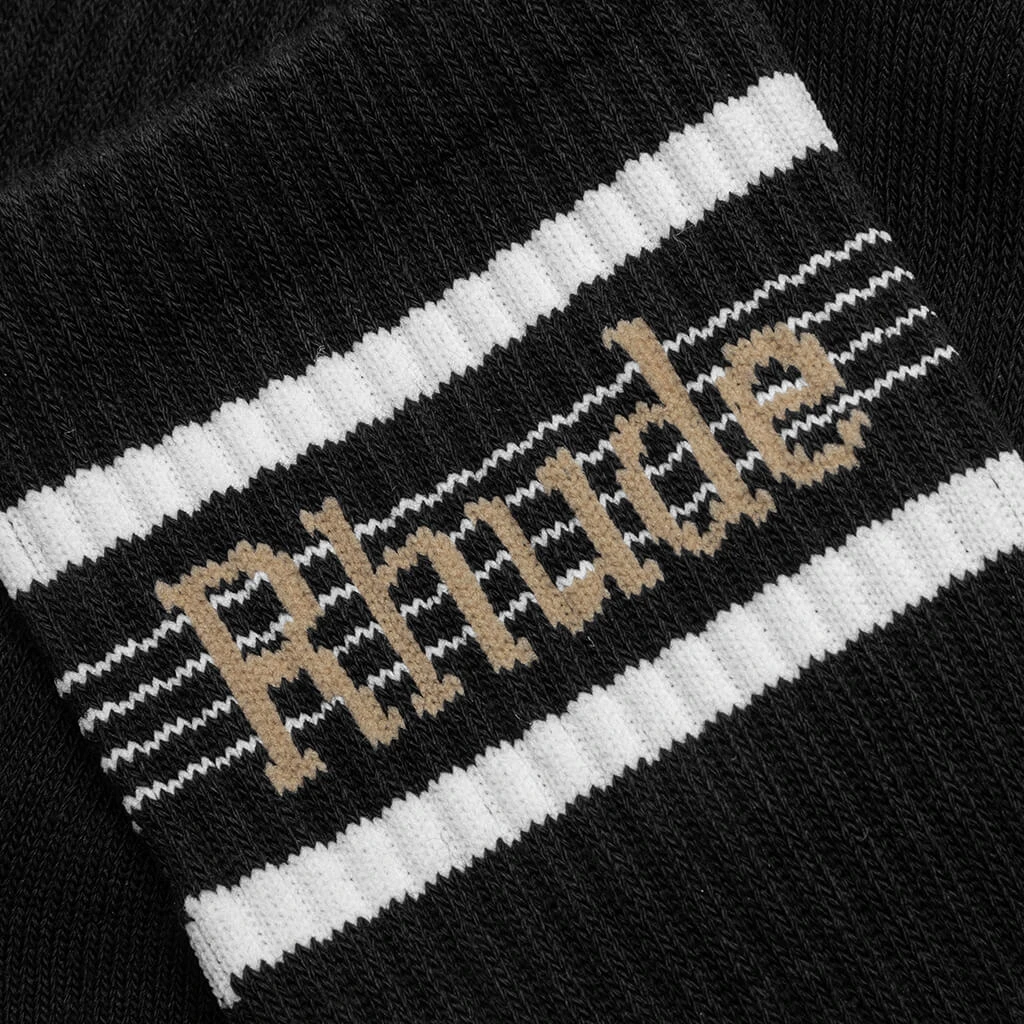 Upgrade your sock collection with the Rhude Logo Stripe Sport Socks. Cut from polyester and cotton, the sock features ribbed detailing at the ankle and foot. Stitched branding and graphics at the ankles wrap up the look.