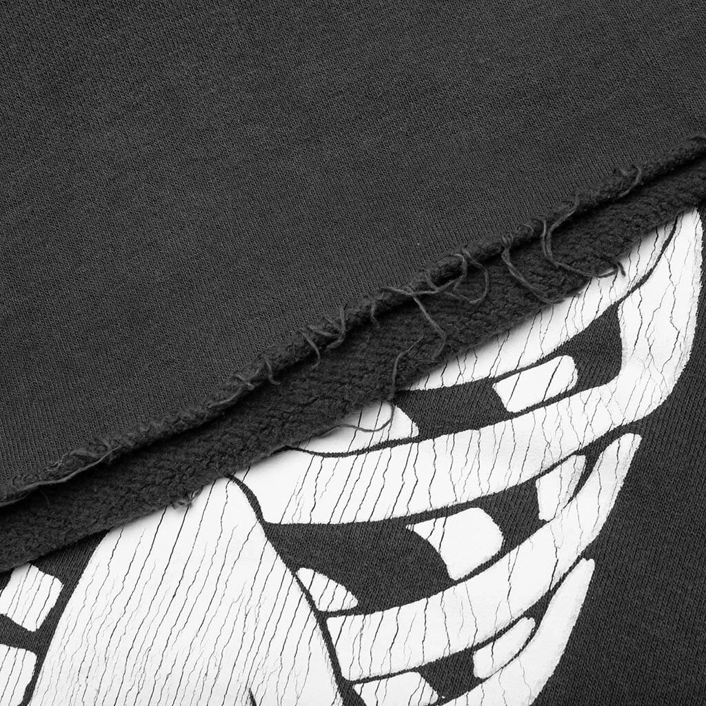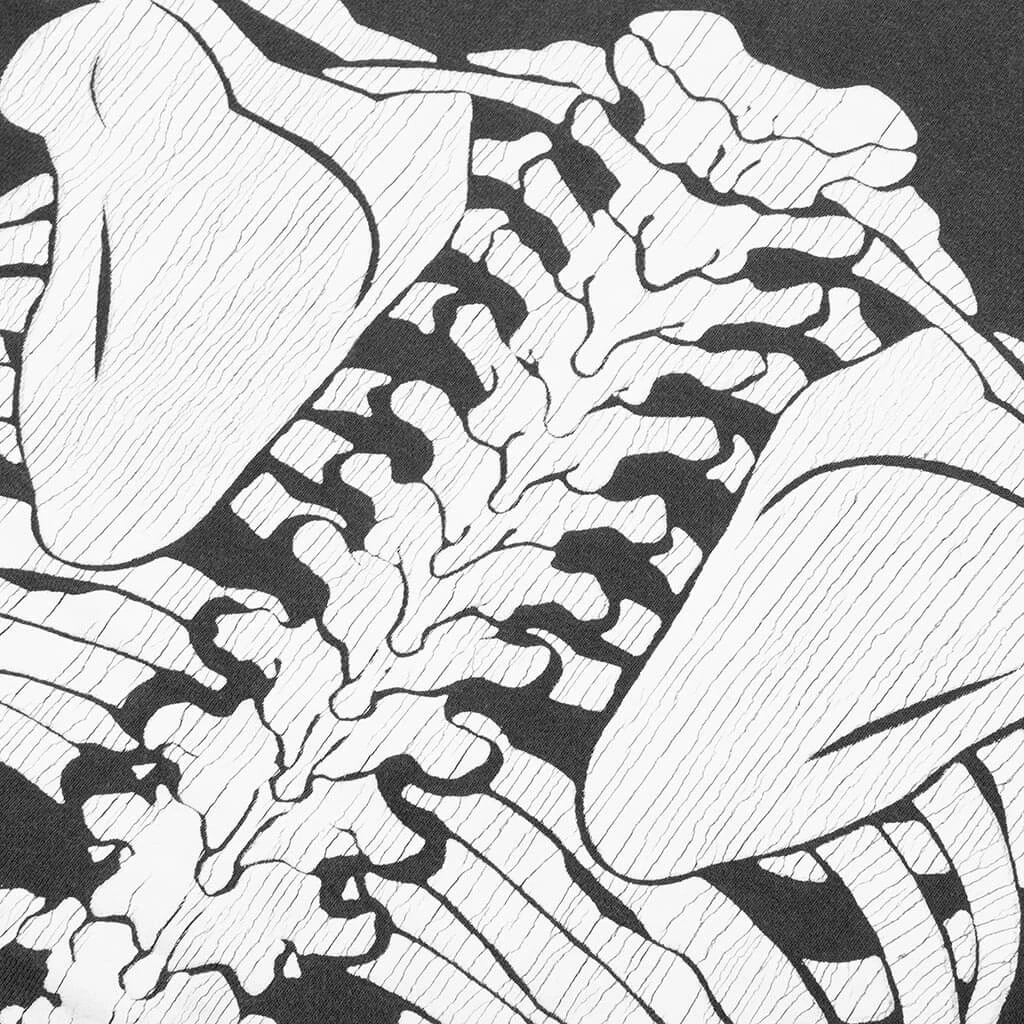 Saint Michael and Vlone collide on the hoodie. Composed of cotton, the design features ribbed detailing at the cuffs. Distressed printed skeleton graphics take up the front of the silhouette as well as the sleeves. Printed branding resides as well, while the hand-applied distressing completes the remainder of the look.