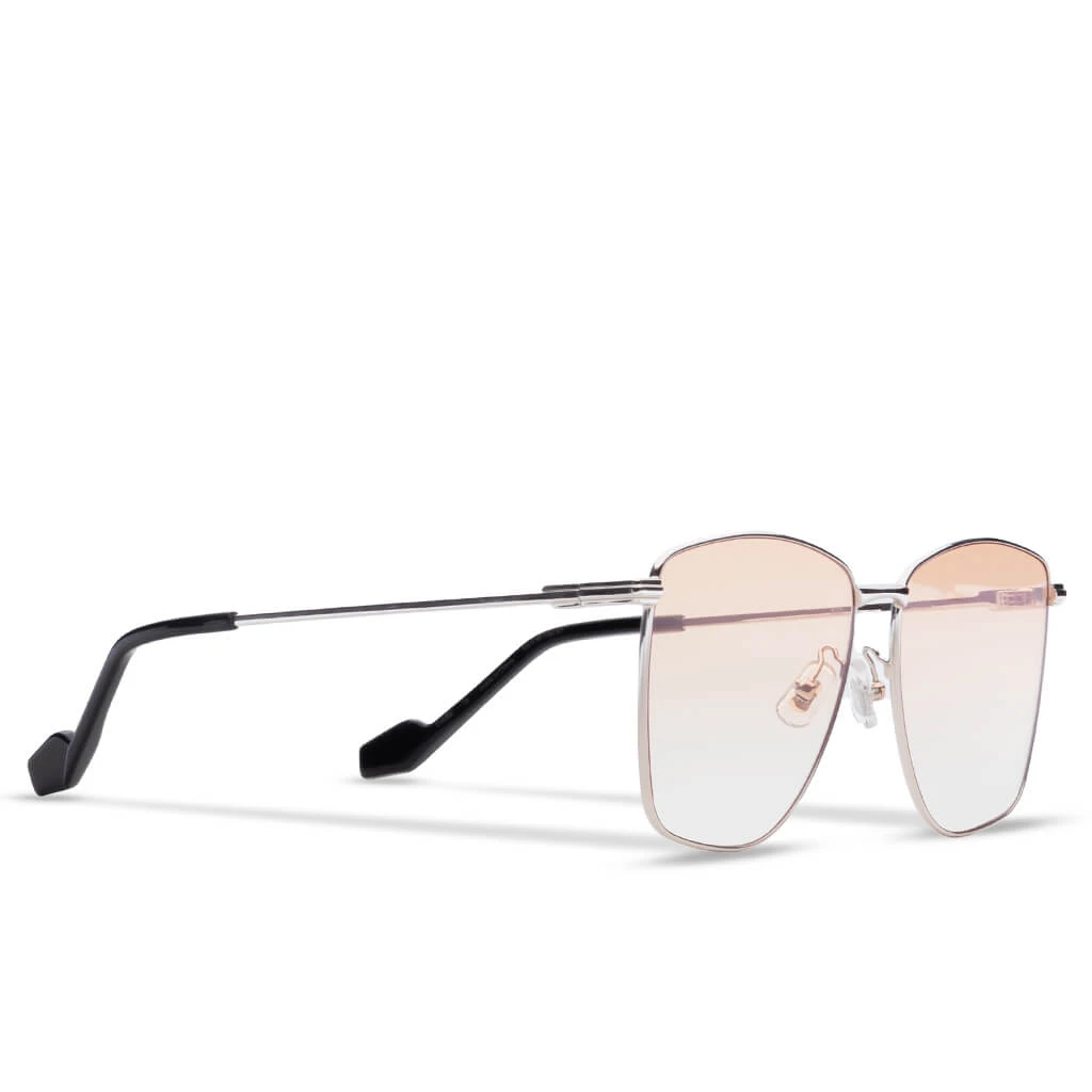 Composed of metal, the oversized Gentle Monster SID-02(OR) frames make a statement with their unique metal bridge and slim metal temples. The gradient lenses make a statement along with the 99.9% UV protection treatment. The unique nose bridge and staggered endpiece design finish the rest of the look.