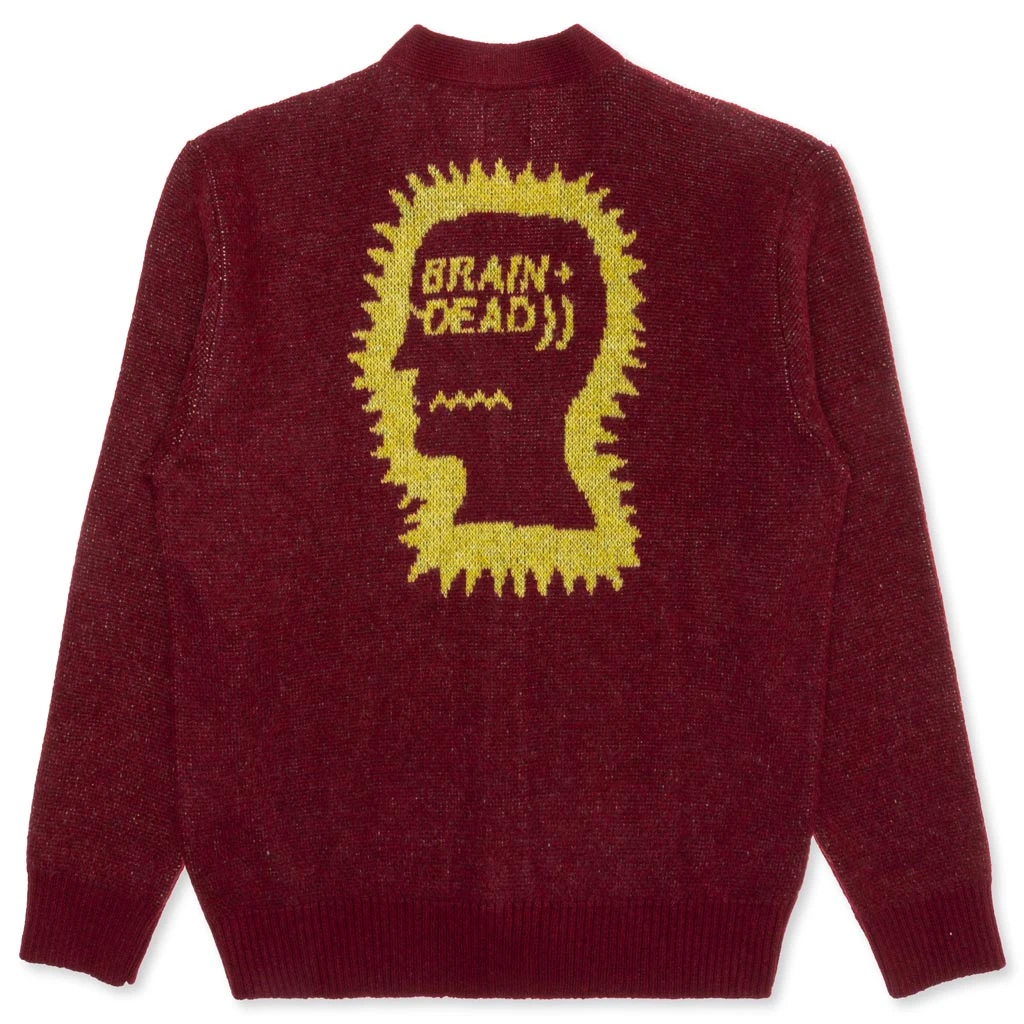 Braindead is made up of artists and designers from around the globe. Bold and disruptive graphics take cues from comics, skateboarding and the spirit of subculture as a whole. Pictured is the Brain Dead Sunshine Button Down Cardigan in Maroon.