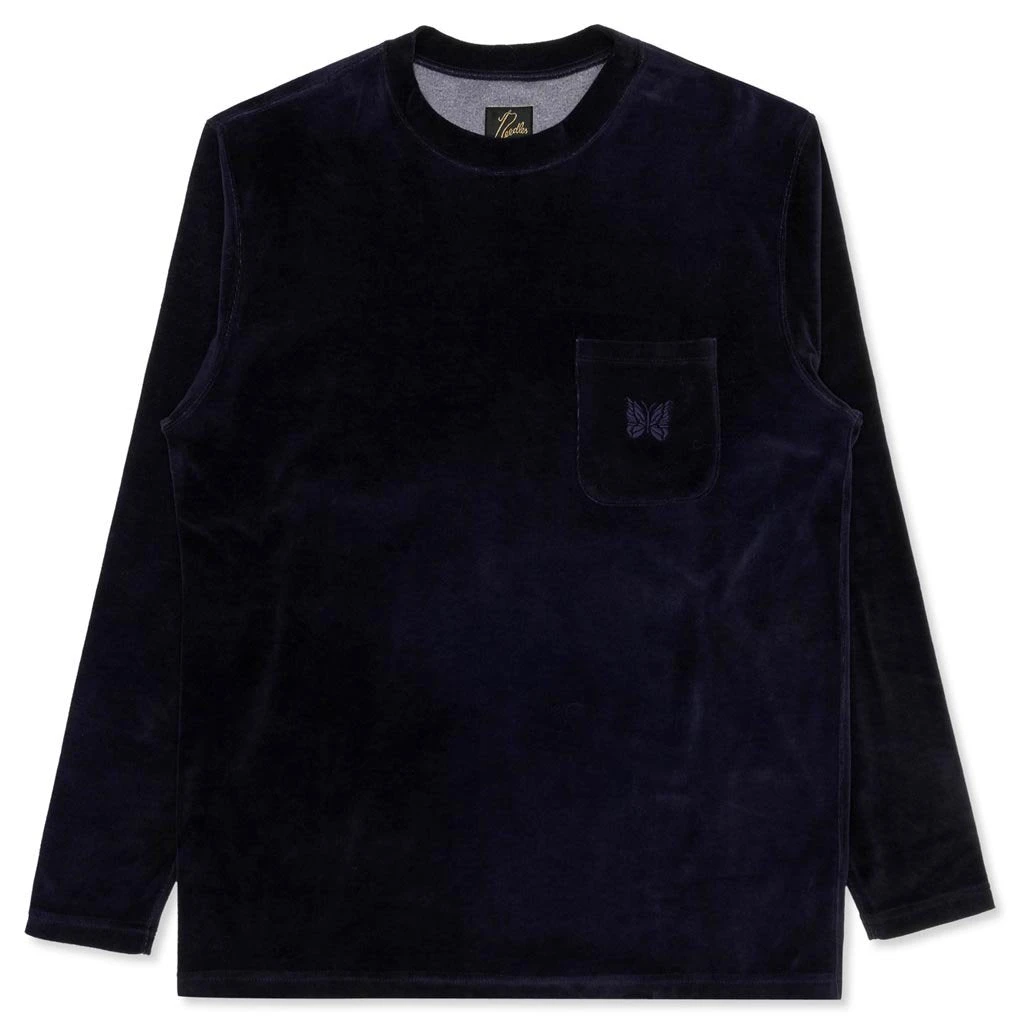 Keizo Shimizu, founded Nepenthes as an apparel distributor in Japan in 1988. 7 years later he would start his own brand ‘Needles’ that has brought unique and casual styles with a vintage feel. Pictured is the Needles Velour Crew Neck Tee L/S in Navy. FK204 NAVY