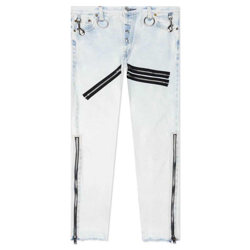 The Gallery Dept. Weapon World 5001 makes an impression on any streetwear apparel rotation. Made from cotton, the jeans feature a straight leg in addition to a logo patch at the rear. Silver-tone hardware is seen, while the belt loops and decorative zip detailing provide further dimension. The five-pocket design finishes the look.