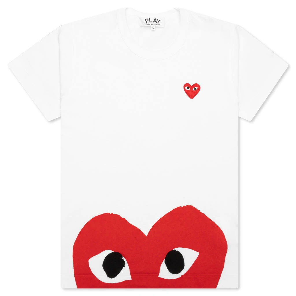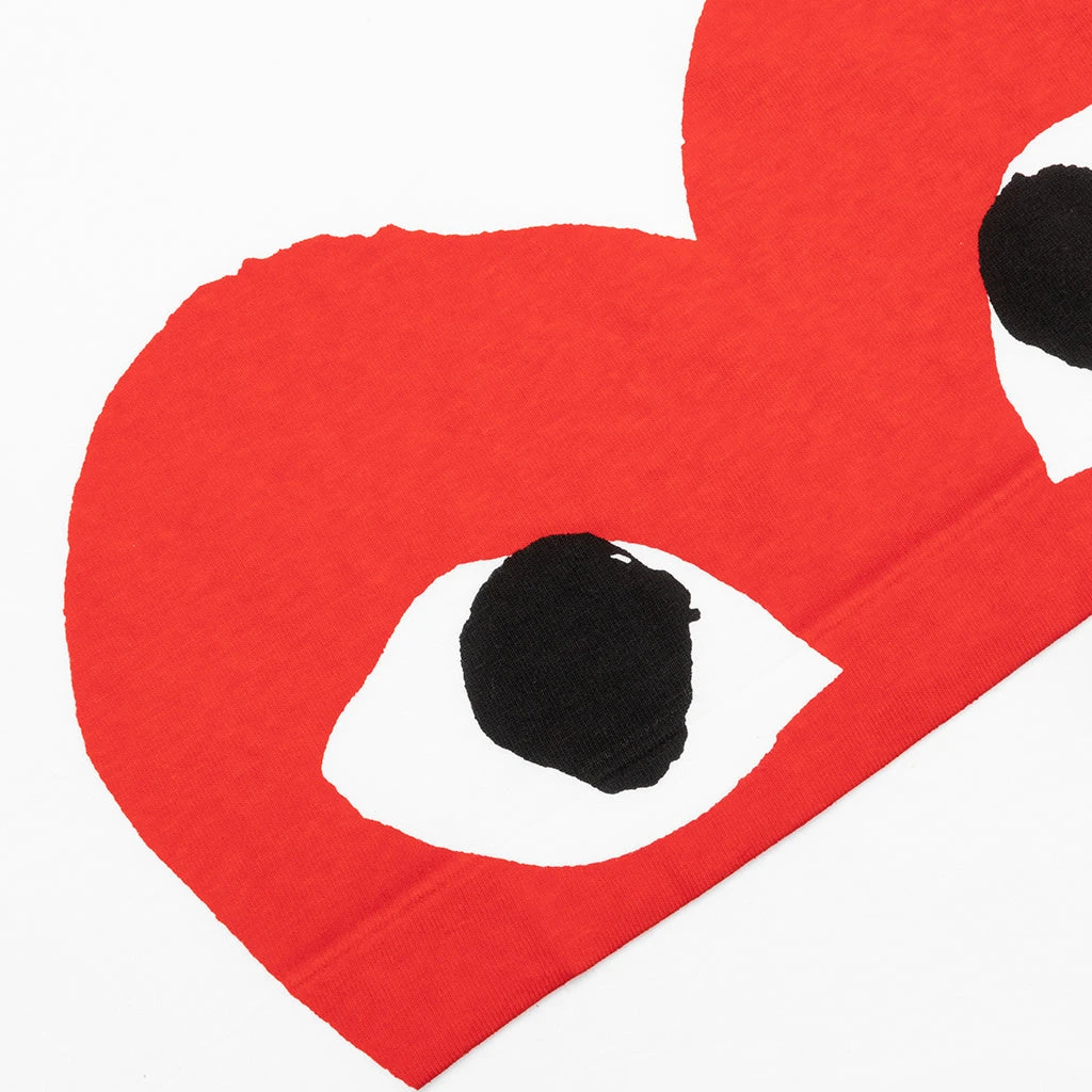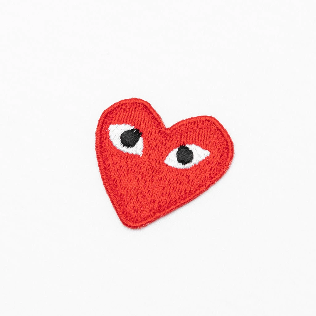 COMME DES GARCONS PLAY APPAREL HAS A SMALLER FIT, WE RECOMMEND SIZING UP.